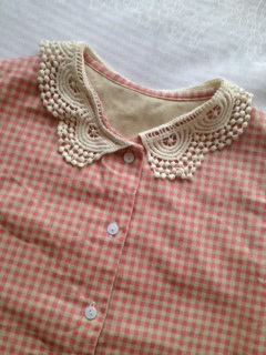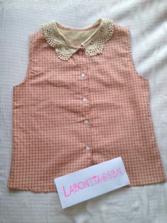 8.New เสื้อแขนกุด ลายสก๊อตสีชมพู ปกลูกไม้ ฟรีไซส์ ขาย 220 บาทค่ะ