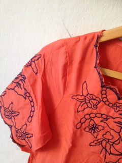 15.New เสื้อตัวยาว เชือกผูกเอวสีส้ม ปักลาย ใส่กับแลคกิ้ง หรือ ขาสั้น ก็น่ารักนะค่ะ ขาย 200 บาทค่ะ