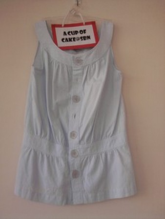 14. เสื้อแขนกุดสีฟ้า จั้มเอว รอบอก 43" ยาว 34" 100B