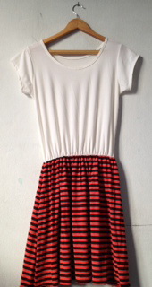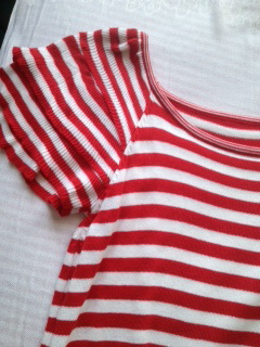 4.Used liked new เสื้อยืดไหมพรม งานเกาหลี ผ้านุ่ม สบาย ลายทางขาวแดง ขาย 200 บาทค่ะ