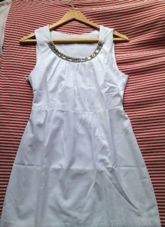 10.New เดรสสีขาว ประดับเพชรด้านหน้า Size M สวยหรู ขาย 250 บาทค่ะ