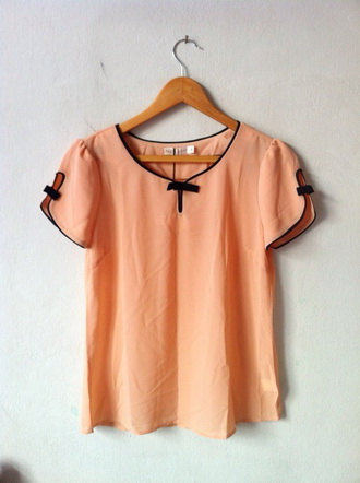 15.New เสื้อผ้าชีฟอง สีส้มอ่อนๆ ประดับโบว์ที่แขน ขายเพียง 250 บาทค่ะ
