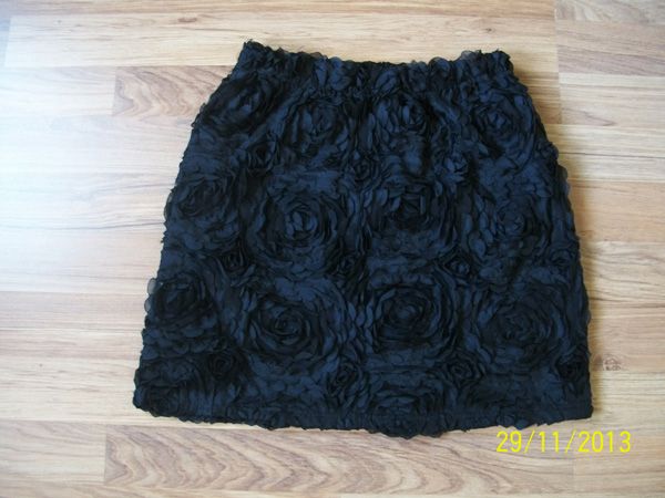 กระโปรงสีดำ ระบายลายดอกไม้ นัารักมาก เอวยางยืด 24 นิ้ว สะโพก 34 นิ้ว ความยาว 14.5 นิ้ว สภาพดีมาก ขาย 100 บาท