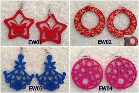 สินค้ารหัส EW ต่างหู้ห้อยแบบไม้นะคะ คุณภาพดีมากกก สวย คลาสสิก และเบาค่ะ สีสันสดใส ใส่แล้วเกิดแน่นอน ทุกคู่ราคาเดียวค่ะ 30 บาท