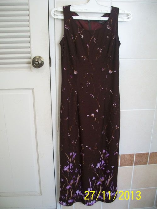 ชุดแซก สีน้ำตาลแดง ลายดอกไม้ อก 31 นิ้ว เอว 28 นิ้ว ความยาว 46.5 นิ้ว ผ้ายืดใส่สบาย ขาย 60 บาท