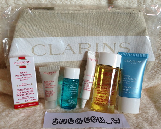 Clarins Set 1 : เป็นเซตที่ช่วยบำรุงผิวและลดเลือนริ้วรอยค่ะ เป็นเซตที่คุ้มค่ามากกกกก มีทุกอย่างครบเลย ใครอยากลองครบเซตก่อนซื้อเชตใหญ่แนะนำสุดๆค่ะ หรือว่าใช้เป็นประจำอยู่แล้ว จะมีเซตนี้ไว้พกพาก็สะดวกมากๆค่ะ เซตนี้ประกอบด้วย