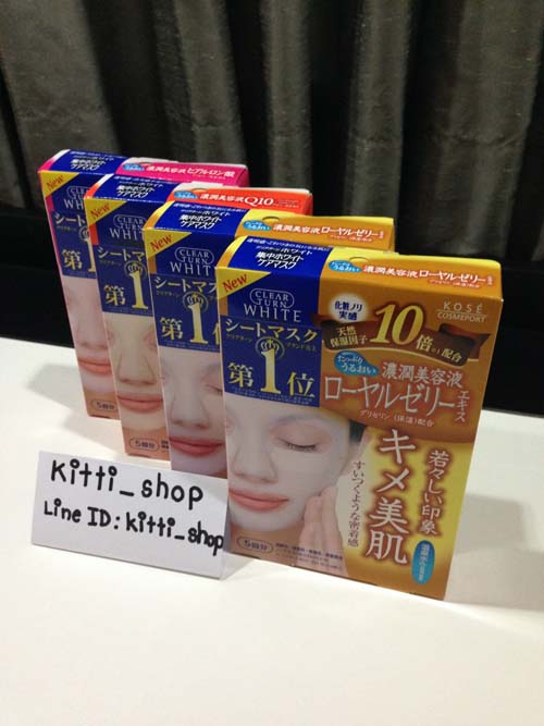 วิธีใช้ : ล้างหน้าให้สะอาดแล้วเช็ดให้แห้ง แกะแผ่นมาส์กจากซอง วางบนใบหน้าโดยให้เริ่มจาก บริเวณรอบดวงตาและบริเวณรอบปากก่อน กดมาส์กเบา ๆ ให้กระชับทั่วไปหน้า อย่าให้มีฟอง อากาศ ทิ้งไว้ 10 นาที แล้วจึงลอกออก ถ้ามีมอยส์เจอร์บางส่วนหลงเหลืออยู่นวดเบา ๆ จน ซึมเข้าไปในผิวหน้า , Kose Mask 1กล่องมี5แผ่น ----ราคา 340฿