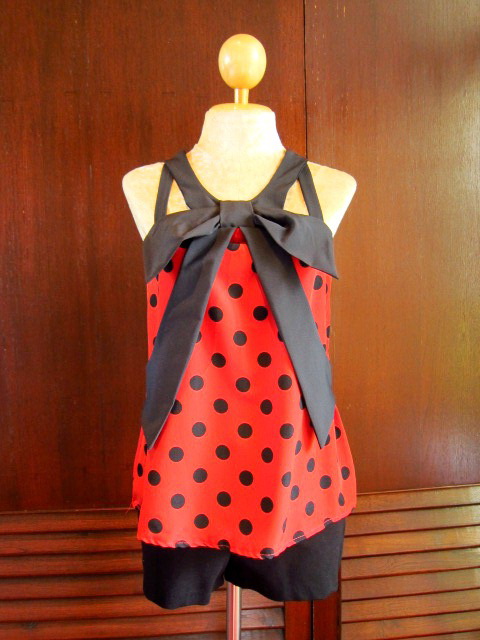 ของใหม่ เสื้อ Big Bow สุดฮิต แขนกุด Pokka Dot สีแดง ใส่แล้วน่ารักตามรูปเลยคะ ผ้าเป้นผ้าลื่นๆ คล้ายๆผ้าหางกระรอง ใส่สบายตัว ไม่อึดอัดนะคะ
