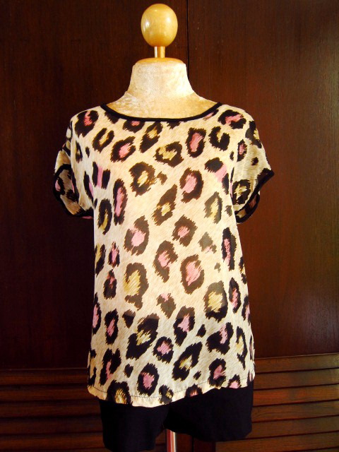 เสื้อแขนสั้นลายเสือ ผ้าชีฟองทอทึบ ใส่กับยีนส์ขาสั้น หรือ กางเกงเอวสูง น่ารักสุดๆ