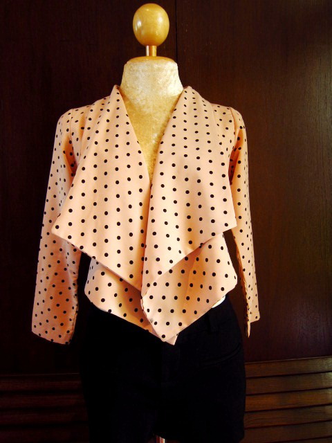 Blazer Pokka Dot สีส้ม โอโรส ปกระบาย ผ้าซาติน ทิ้งน้ำหนัก นิ่ม ใส่สบายค่ะ