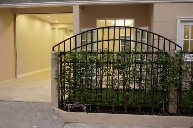 อีกด้านหนึ่งของระเบียง เป็นหลังคากึ่งกลางแจ้งที่มีลักษณะเป็นระแนงเหล็ก ที่ถูกออกแบบให้แข็งแรงพอ สำหรับรองรับการปลูกไม้เลื้อยให้เป็นระเบียงหลังคาต้นไม้ได้