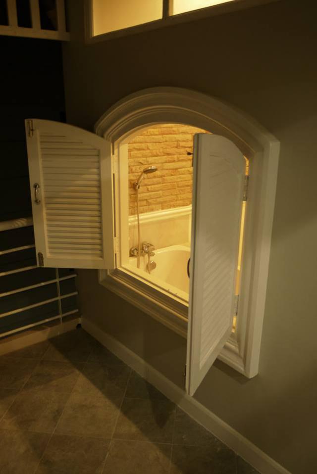 บริเวณอ่างอาบน้ำ สามารถใช้งานเป็น อ่างแช่นำเพื่อผ่อนคลาย โดยมีหน้าต่างขนาดใหญ่ ที่สามารถเปิดเพื่อชมแสงจันทร์ ในขณะที่กำลังผ่อนคลายได้