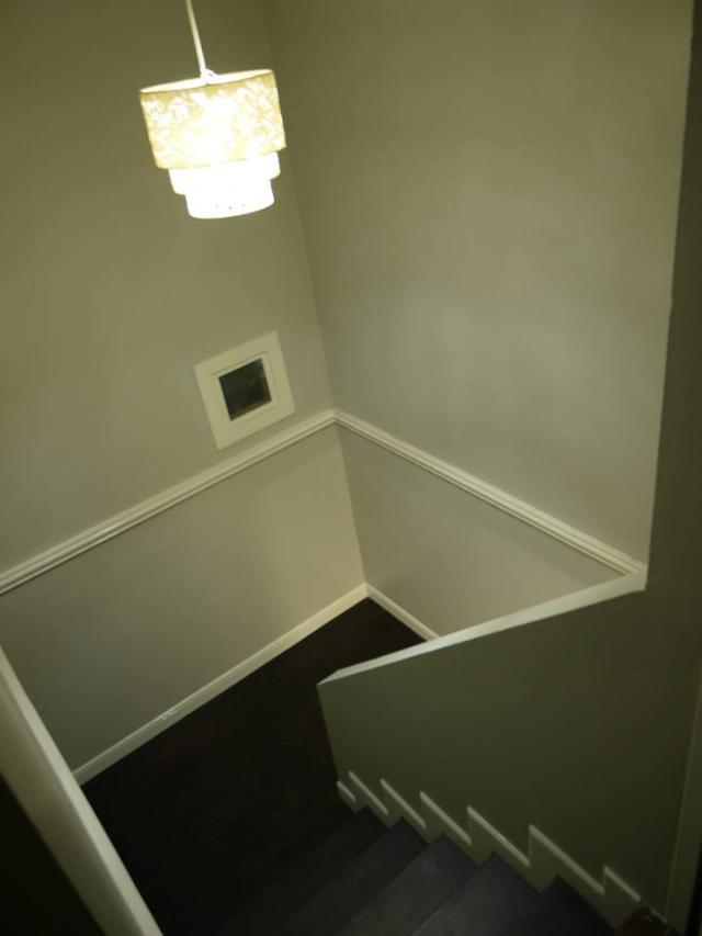 โถงบันได ถูกออกแบบให้มีช่องสำหรับแสงอาทิตย์ผ่านให้คว่ามสว่าง และ มีบัวสีขาวคาด ตัดกับสีเทาของผนัง เน้นให้เห็นบรรยาการของอาคารร่วมสมัย