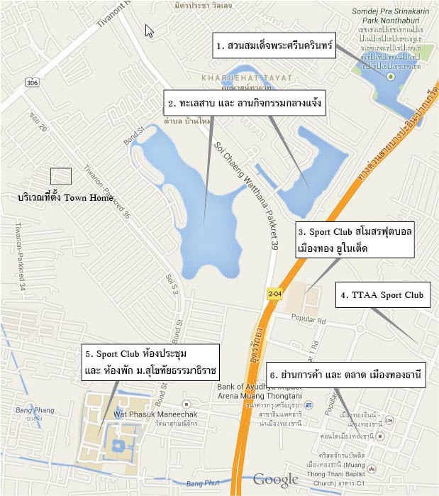 - 1. สวนสมเด็จพระศรินครินทร์ เดินทางในเมืองทองได้ ไม่ต้องออกถนนใหญ่ ใช้เวลา 3-5 นาที เป็นสวนสาธารณะ สถานที่พักผ่อน ขนาด 163,200 ตารางเมตร ประกอบด้วยทั้งพื้นที่สีเขียว และ ทะเลสาบ เหมาะสมอย่างยิ่งสำหรับเป็นสถานที่พักผ่อน มีทั้งบรรยากาศที่ร่มรื่น และอากาศที่สดชื่น