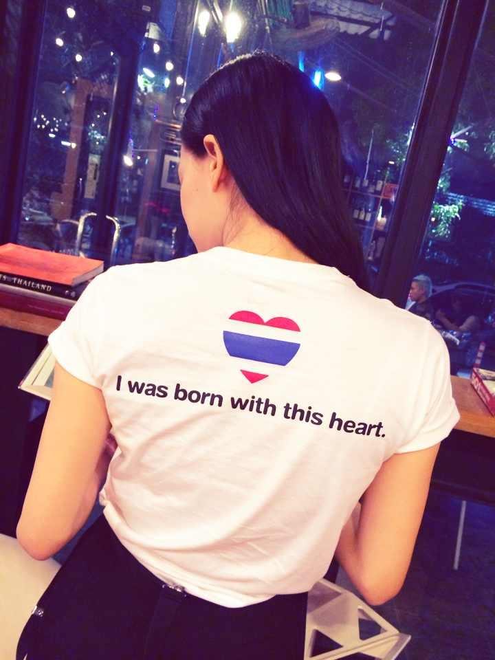 ฉันเกิดมาพร้อมกับหัวใจที่รักประเทศไทย. I was born with this heart. (สกรีนด้านหลัง)