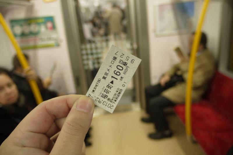 ตัวรถไฟดูทันสมัยค่ะ แต่ดูตั๋วแล้วแอบโบราณ เป็นกระดาษชิ้นเล็กๆ เหมือนตั๋วรถไฟแบบเก่า ที่ยังต้องมีพนักงานตรวจตั๋ว ทั้งๆที่ ตั้งแต่ซื้อตัวและตรวจตั๋วเข้าออกก็เป็นระบบอัตโนมัติหมดแล้ว ทำให้บรรยากาศออกมาดูร่วมสมัย แต่นั่นไม่สำคัญค่ะ ที่สำคัญคือ เอสแค่ขึ้น 1 สถานีมายังสถานีอุเอโนะ แต่ราคาคนละ 160 เยน (51.2 บาท) O_O มันแอบแพงอีกแล้วค่ะ