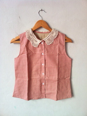 1.New เสื้อแขนกุดลายสก๊อต สีชมพูครีมนะค่ะ ฟรีไซส์ อกได้ถึง 36" ค่ะ SALE ==> 160 บาท