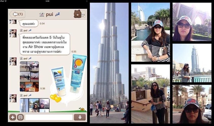 งาน Air Show กลางทะเลทราย พายุฝุ่นทะเลทราย ทีประเทศดูไบ แดดแรงกว่านี้ มีอีกไหม ทดลองครีมกันแดดตลอด 5 วันเอาอยู่ สุดยอดมากค่ะ กันแดดดี ใช้มาแล้วทั้งกลางทะเลทราย และภูเขาหิมะอุณหภูมิติดลบ Umbrella และ Sunday ครีมกันแดด ตัวสุดท้ายของคุณ