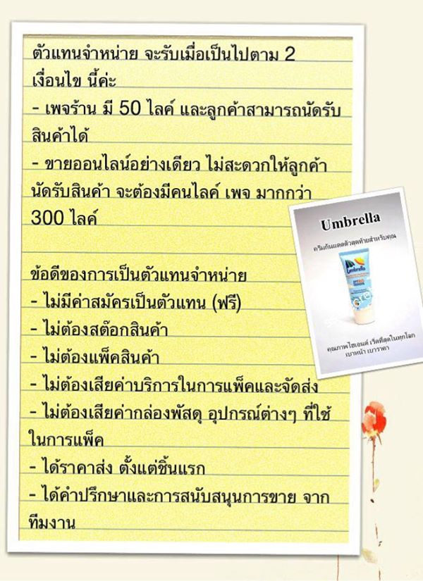 - ไม่มีค่าสมัครเป็นตัวแทน (ฟรี)