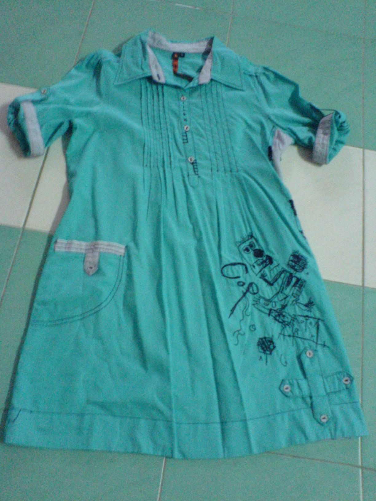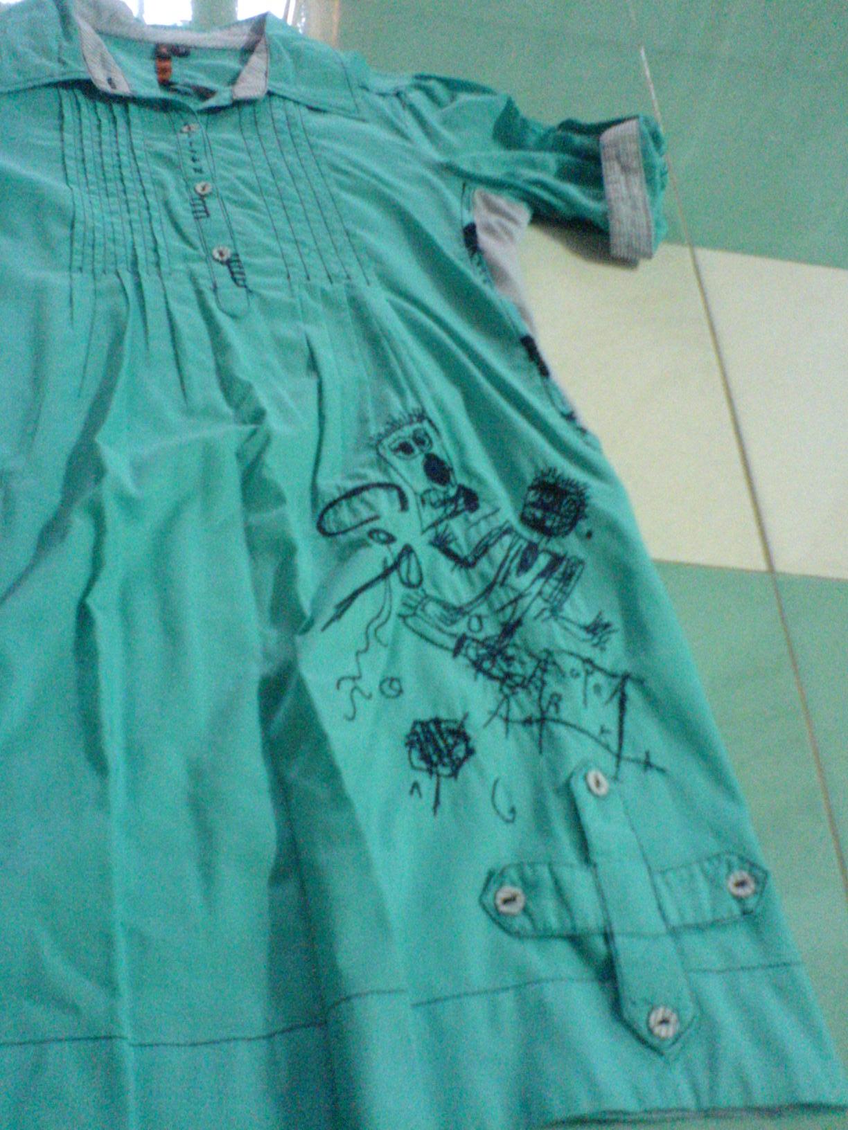 เสื้อตัวยาวคอปก size M สีเขียว เล่นลายปัก ราคา 300 บาท