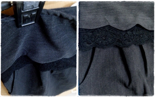 สภาพ 100 % (ยังไม่ใส่ ไม่มีตำหนิใดๆทั้งสิ้น) กระโปรงทำงานสีเทาเข้ม มีกระเป๋าด้านข้าง แต่งระบายลูกไม้