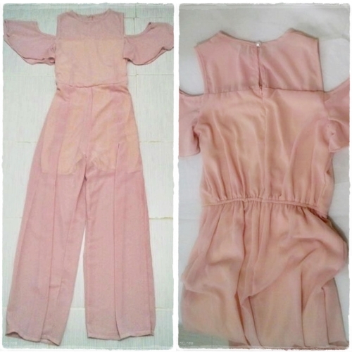 สภาพ 100 % (ยังไม่ใส่ ไม่มีตำหนิใดๆทั้งสิ้น) Jumpsuit สีชมพูนู๊ดสวยมากกกกคะมีซิปหลังผ้าชีฟองมีซับในเอวยางยืดหลัง