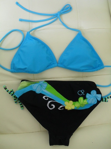 เผื่อไปทะเลสงกรานต์นี้ซื้อเลยบิกินี่สีฟ้าสดใสของใหม่ ไซต์ S (มีฟองน้ำกันโป๊)กางเกงสีดำด้านหลังสกรีนลายน่ารักมากไซต์ M แต่ตัวไม่ใหญ่เหมาะกะสาวไซต์ S-M ค่ะ ราคาน่าใจหาย 220 บาทเท่านั้น
