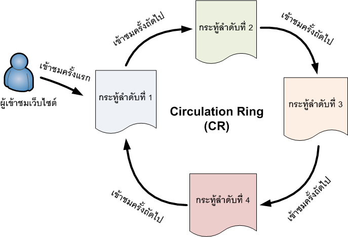 แนวคิดการออกแบบเครื่องมือ จำหน่ายจ่ายแจกข้อมูลใหม่ Circulation Ring (CR) ซึ่งมีแนวคิดพื้นฐาน แบบเดียวกันกับ การออกแบบระบบสนับสนุนการจำหน่ายจ่ายแจกข้อมูลแบบใหม่ (สารพันแอดส์) คือ เป็นทางเลือกรับข้อมูลให้กับผู้เข้าชม โดยไม่แย่งความสนใจของผู้เข้าชมจากเนื้อหาหลักที่ผู้เข้าชมกำลังรับข้อมูลอยู่ ไม่ก่อให้เกิดความหงุดหงิด รำคาญ ของผู้เข้าชม จึงเป็น ระบบจำหน่ายจ่ายแจกข้อมูล ที่ออกแบบให้ดูสอดคล้อง กลมกลืน เป็นส่วนเติมเต็มของหน้าแสดงข้อมูล ให้ดูสมบูรณ์สวยงาม ยิ่งขึ้น (อ่านแนวคิดการออกแบบ การออกแบบระบบสนับสนุนการจำหน่ายจ่ายแจกข้อมูลแบบใหม่ (สารพันแอดส์) คลิ๊กที่นี่)