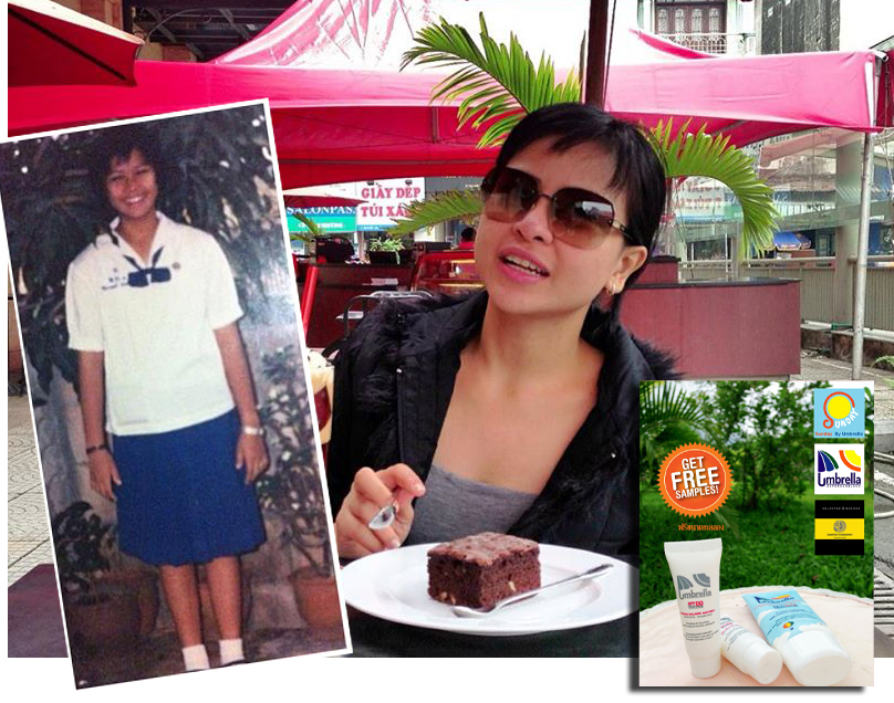 ส่วนผลระยะยาวของการใช้กันแดดอย่างถูกวิธี มาดูภาพนี้กันเลยค่ะ เป็นภาพถ่ายของเอสเองสมัยตอนเด็กๆ กับปัจจุบัน