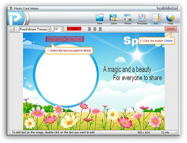เมื่อเราแก้ไข การ์ด ภาพถ่าย เราอาจต้องการ ลบ ข้อความหรือภาพ ให้ทำตามภาพนี้