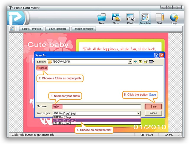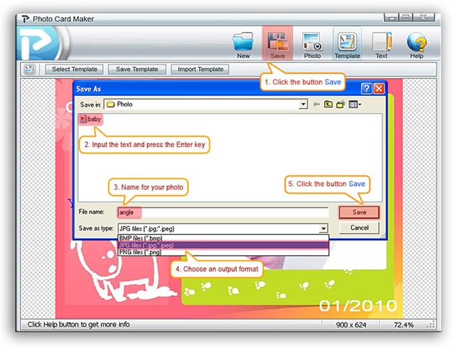 ซึ่งเราสามารถบันทึกการ์ดของเรา ได้ในรูป .jpg, .jpeg, .bmp, .png