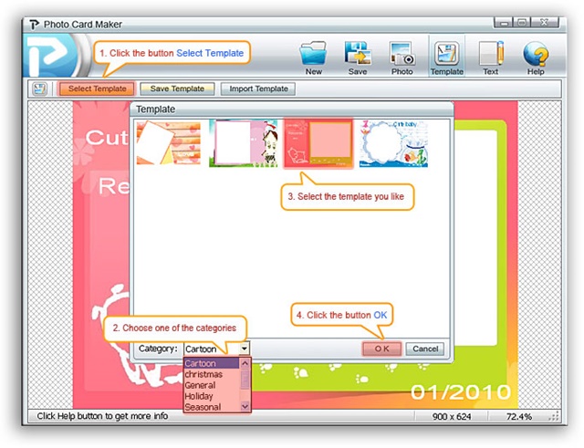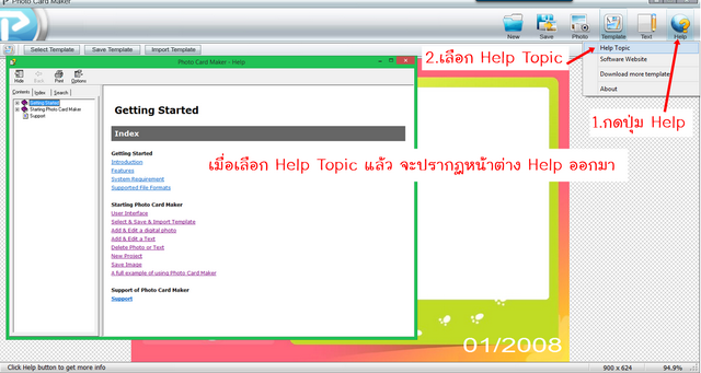 ที่มาของรูปและลำดับขั้นตอน ; นำมาจาก Help ของโปรแกรม Photo Card Maker