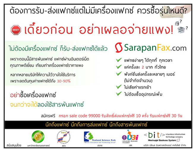 - วิธีส่งแฟกซ์ผ่านเน็ตกับ sarapanfax >> http://www.siamsignature.net/b/6