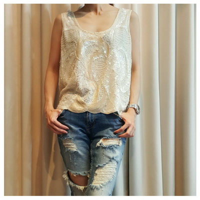 NEW เสื้อปักเลื่อม vintage สีงาช้าง freesize 1190 bht