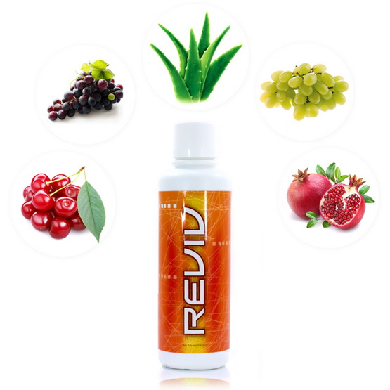 10.Reviv เครื่องดื่มรสเข้มข้นประกอบด้วยน้ำว่านหางจรเข้ น้ำองุ่น น้ำทับทิม น้ำเชอร์รี่ และสารสกัดจากสมุนไพรหลายชนิด เช่น โสม ขิง ลิโคริช และเยอร์บาเมท