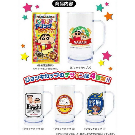 เบียร์ชินจัง เป็นชุดที่ทำเครื่องดื่มรูปลักษณ์ที่คล้ายกับเบียร์แต่จริงๆ แล้วเป็นน้ำรสส้มค่ะ ไม่มีส่วนผสมของแอลกอฮอล์