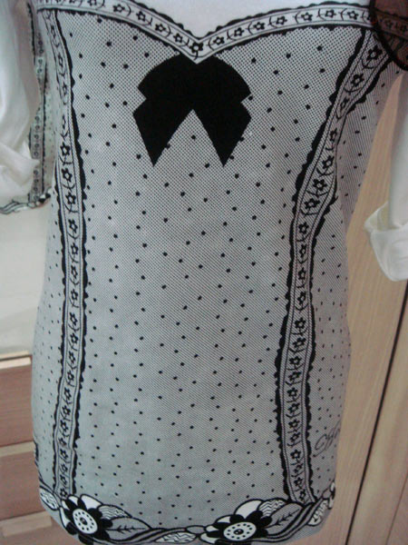 http://www.meejai.com/mjphoto.php?imgid=98491 เดรสช่วงบนเป็นผ้ายืด ๆ ซีทรู ด้านล่างแต่งลายจุดหลากสี ด้านหลังมีโบว์ผูกค่ะ ราคา 290 บาทค่ะ