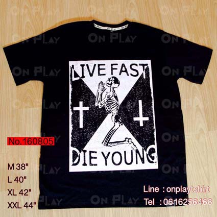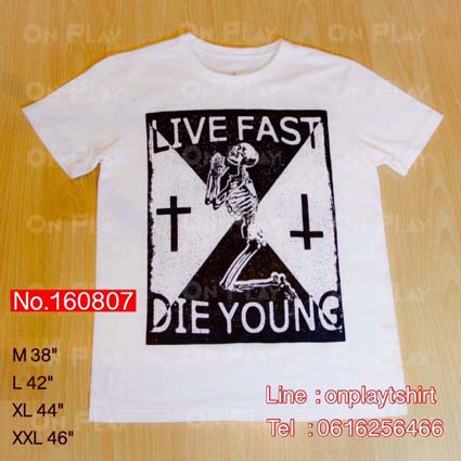 ลาย Live fast die young มีสีดำขาว ดำเทา ขาวดำ ราคา 300 บาท