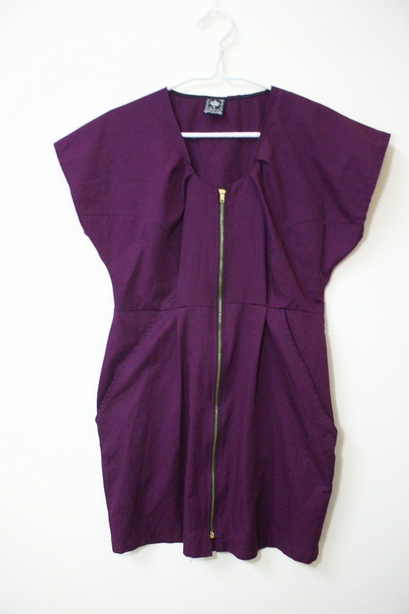 ชุดแซกสีม่วง แต่งซิปด้านหน้า