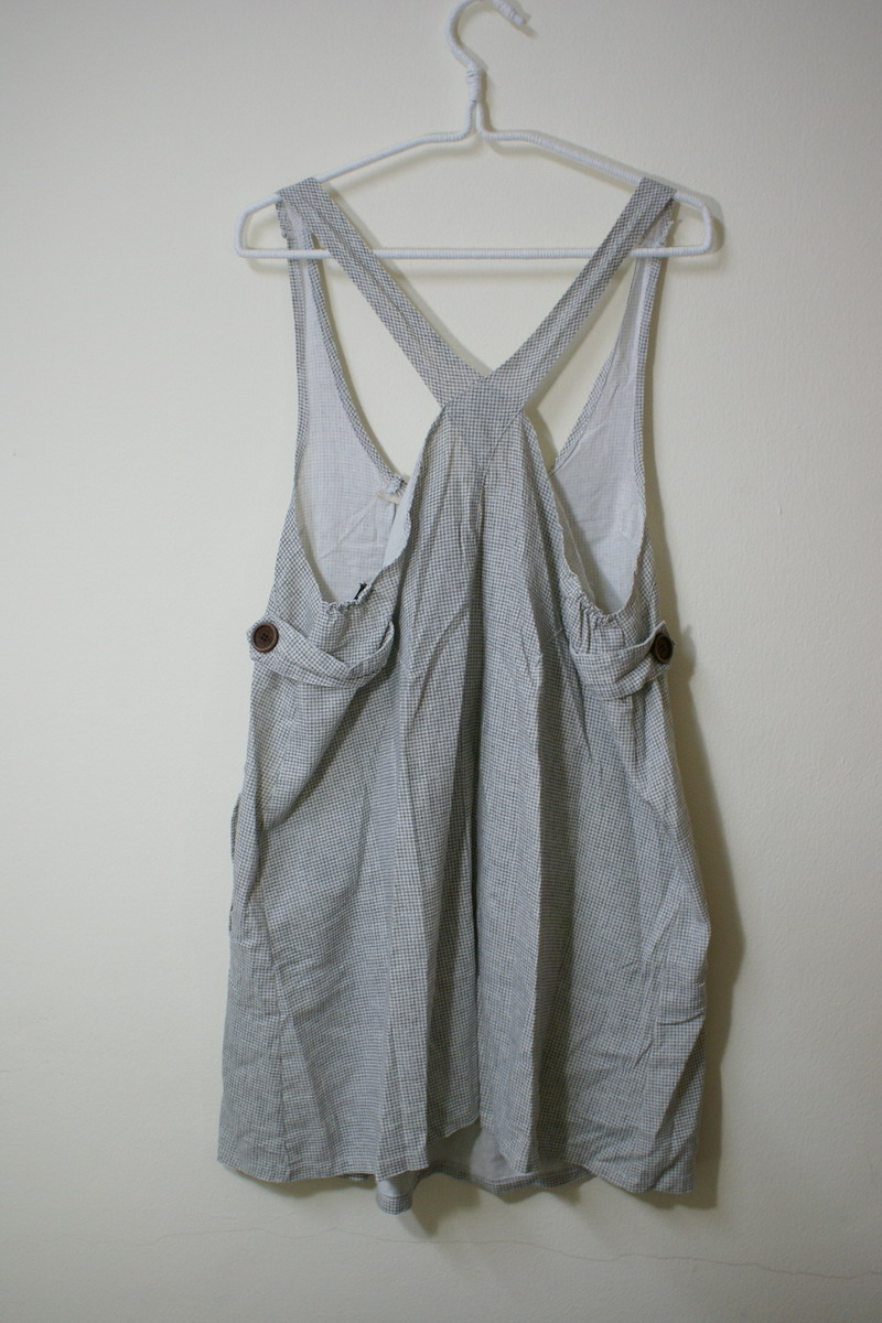 ชุดเอี๊ยมสีเขียวอ่อน ลายตารางเล็กๆ มีกระเป๋าสองข้าง