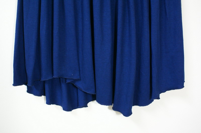 กระโปรงบานสีน้ำเงิน เนื้อผ้าทิ้งๆ ชายกระโปรงไม่เท่ากัน