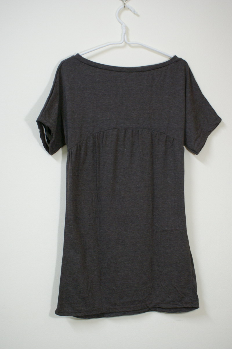เสื้อยืดตัวยาวสีเทาเข้ม