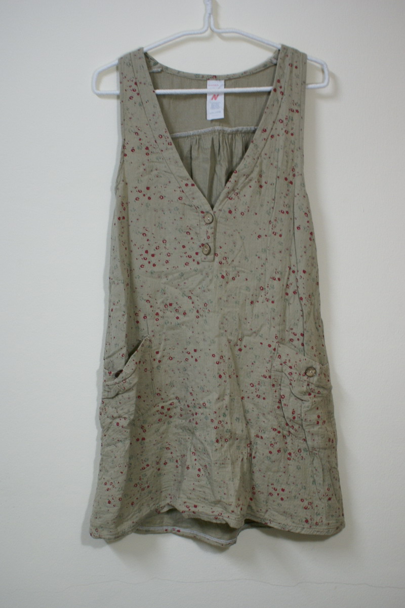ชุดแซกแขนกุด ลายดอกไม้เล็กๆ มีกระเป๋า 2 ข้าง