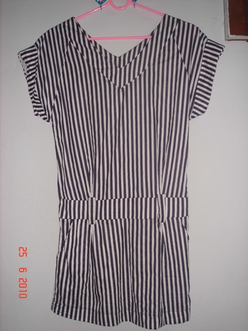 กระโปรงแซก ลายทางยาวสีน้ำเงิน หน้าอก 35-36