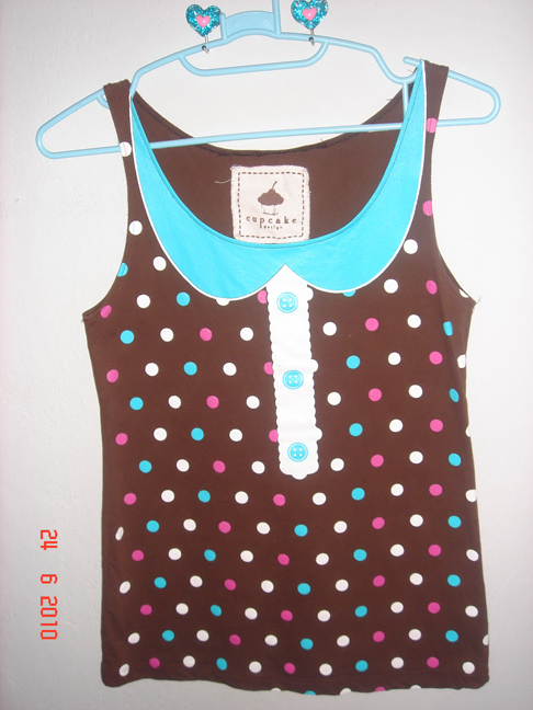 เสื้อกล้ามลายจุดสีน้ำตาล หน้าอก ได้ถึง 36"