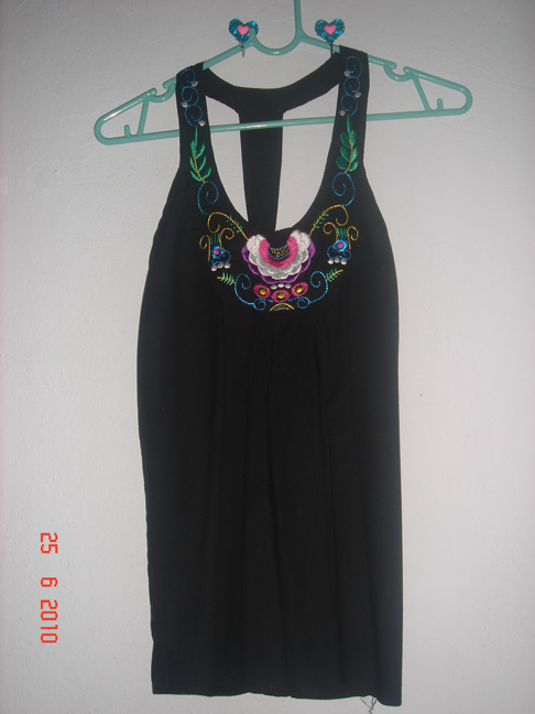 เสื้อกล้ามสีดำ ด้านหลังเป็นสม็อกค่ะ หน้าอกใส่ได้ถึง 36"