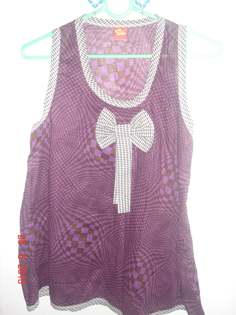 เสื้อแขนกุดสีม่วง เนื้อผ้าบาง ใส่สบายค่ะ หน้าอก ได้ 36"