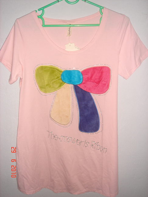 เสื้อยืดสีชมพู ลายโบว์ น่ารักมากค่ะตัวนี้ ไม่จับจองไม่ได้แล้ว