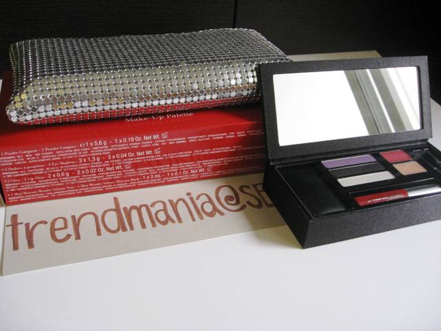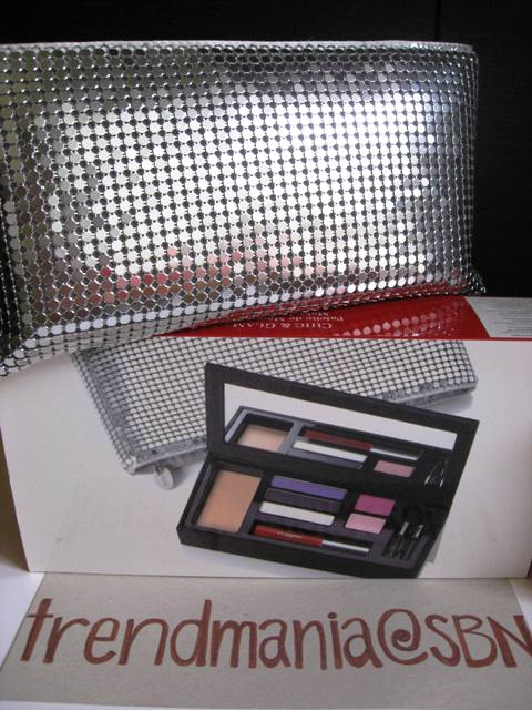 Chic & Glam set ชุด set แต่งหน้า พร้อมกระเป๋าถือเล็ก ราคาพิเศษ 480 บาท ประกอบด้วย eye shadow 3 colors, Lips 2 colors, Mascara Black สีดำ ขนาดพกพาและแป้งผสมรองพื้น