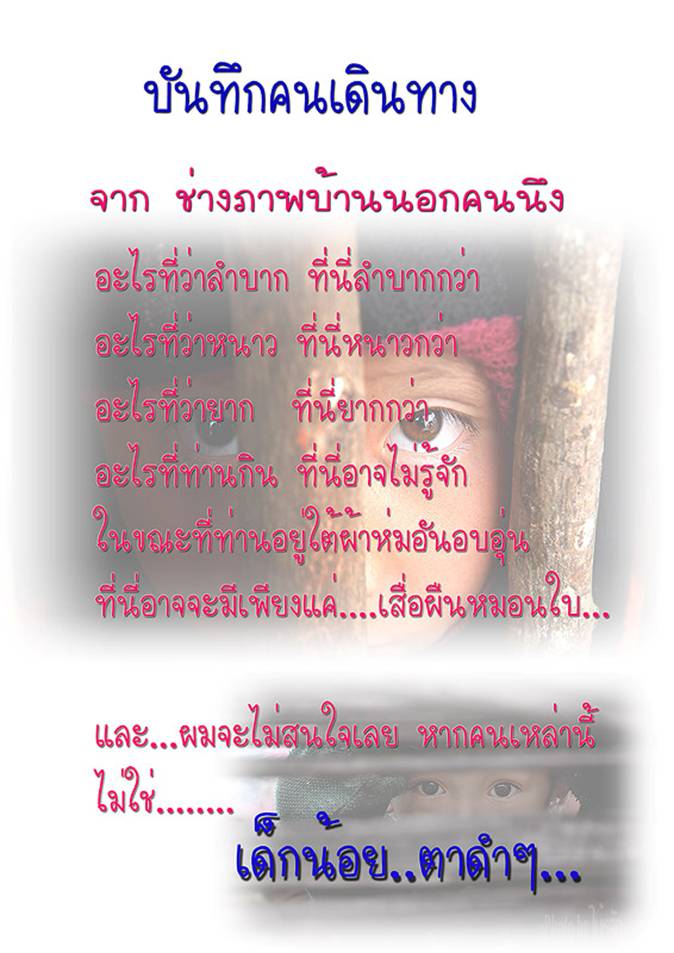 โอกาสที่เรา ไม่ต้องแบ่งข้าวกลับไปบ้านให้ใครกิน แต่ เขาเหล่านี้ สอนให้เรารู้ว่า ข้าวปลาอาหาร เราอร่อย